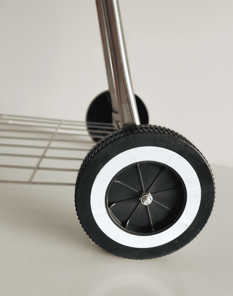 Possibilità di trasportarlo ovunque grazie ai due piedini e alle due ruote: in giardino, al parco o in campeggio.