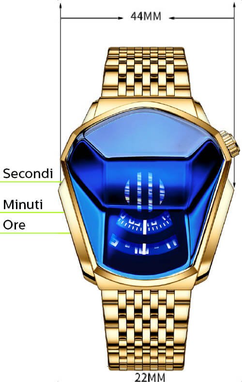 Per non passare inosservati questo è l’orologio che bisogna assolutamente avere al polso! Un Design mai visto prima, realizzato in acciaio placcato in oro 18 carati. Il giusto mix tra Lusso ed Eleganza in Super Promozione accessibile a tutti.