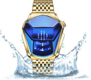 100% anti-acqua fino ai 70 metri di profondità. Design unico per questo orologio, una cassa con questa forma non si era mai vista. Con questo orologio al polso vi guarderanno tutti!