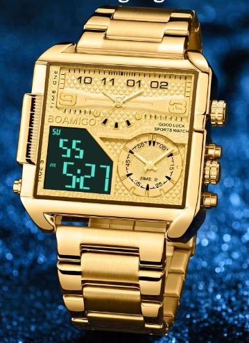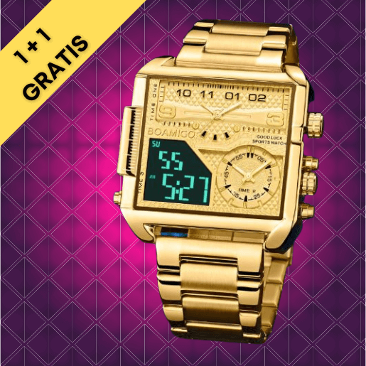 Per non passare inosservati questo è l’orologio che bisogna assolutamente avere al polso! Un Design mai visto prima, realizzato in acciaio placcato in oro 18 carati. Mix di Lusso ed Eleganza, in Promozione: 1+1 GRATIS!