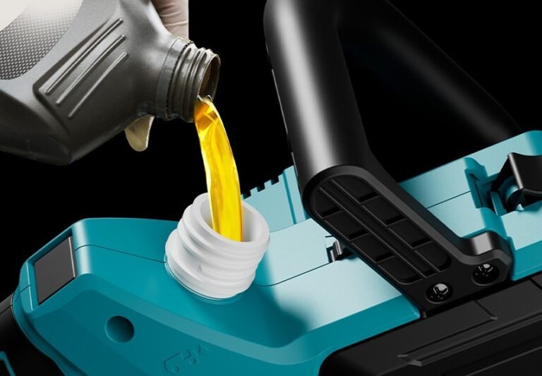 Dzięki zintegrowanemu automatycznemu systemowi smarowania nasza pilarka będzie służyć przez wiele lat. Wystarczy odkręcić korek i wlać olej do pojemnika na olej, aby łańcuch tnący i wewnętrzne przekładnie silnika były zawsze odpowiednio nasmarowane. Prawidłową ilość oleju można rozpoznać po widocznym poziomie, który wskazuje dokładną ilość.