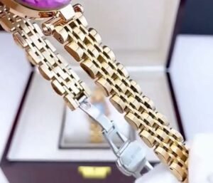 Anche il cinturino in maglia d’acciaio è placcato in oro 18 carati, in questo modo anche i piccoli dettagli fanno la differenza, garantendo qualità.