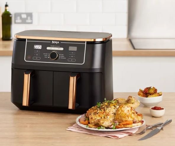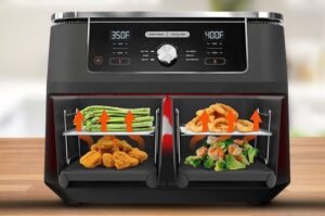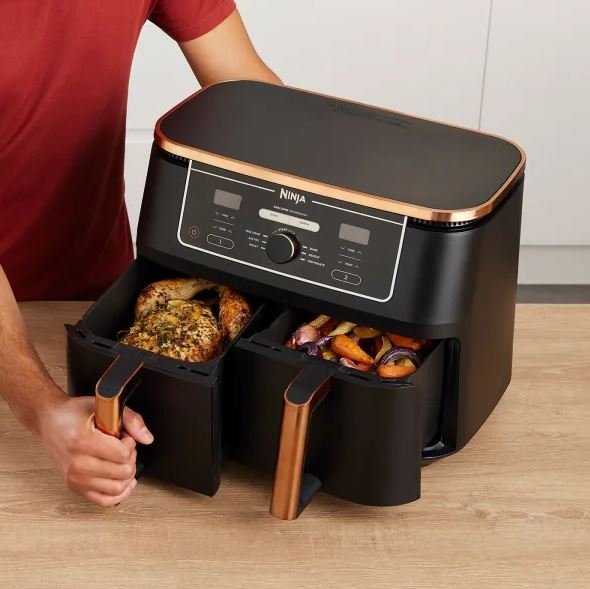 Nuova Friggitrice ad aria con doppio cestello, si tratta del modello con la capienza più ampia che ci sia, ben 15 litri per preparare velocemente più piatti per tutta la famiglia.