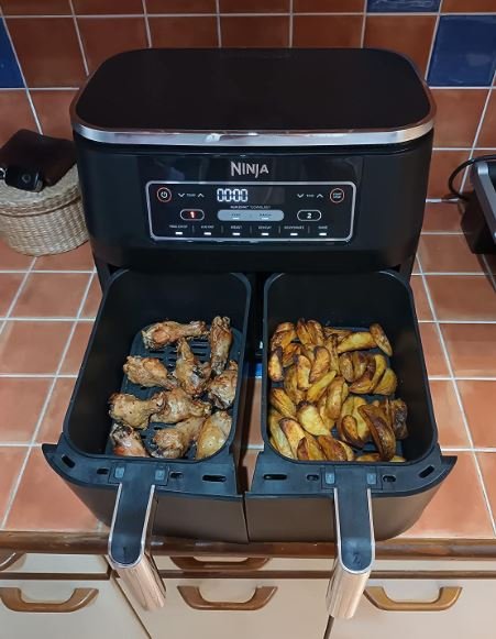 “Questa doppia friggitrice dal sistema ad aria è veramente super! Guardate anche dalla foto, ho fatto una gran bella figura con la mia famiglia preparando del pesce impanato con verdure cotte, si vede proprio che la cottura è senza grassi, i cibi non sono per niente unti come al solito. Ottimo prodotto!”