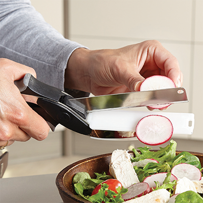 Dopo essere stata vista in tutti i più famosi reality in TV, è arrivata anche in Italia, l’innovativa forbice 1000 usi con tagliere incorporato!