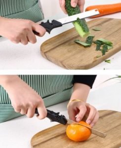È semplicemente geniale! L’ho provato tagliando le zucchine e ci ho messo la metà del tempo che impiego di solito. La lama è ben affilata e la molla della forbice funziona molto bene, inoltre si lava rapidamente e ha la sicura una volta richiuso per occupare meno spazio nel cassetto.”