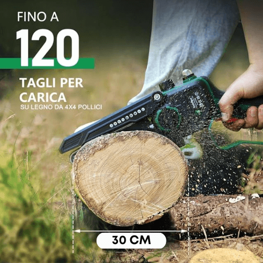 MINI ELETTROSEGA PROFESSIONALE COMPLETA DI ACCESSORI - Incluse anche 2 Batterie e una valigetta ultra resistente. L'originale e innovativa Motosega che taglia in maniera facile ed efficiente qualunque tipo di legno.