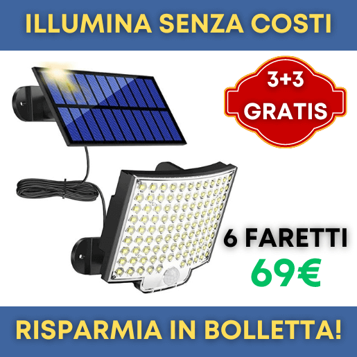 Ecco l’innovativo faretto ad energia solare con 100 LED ultra luminosi! Garantisce una illuminazione continua per tutta la notte, ricaricandosi in automatico durante il giorno con la luce del sole.