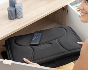 Può essere posizionato ovunque: sulla poltrona, sul divano o sul letto, dopo il massaggio può essere piegato e riposto anche in piccoli spazi.