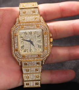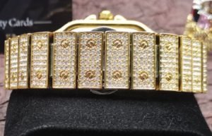 Anche il cinturino in maglia d’acciaio è placcato in oro 18 carati con pietre preziose incastonate, in questo modo anche i piccoli dettagli fanno la differenza, garantendo qualità.